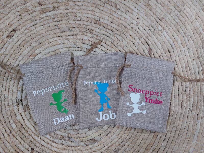 Bewaar je pepernoten in dit leuke jute zakje.