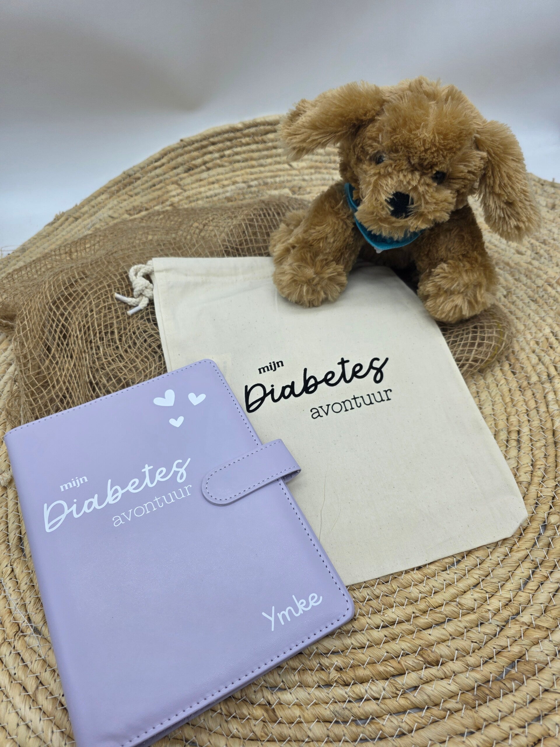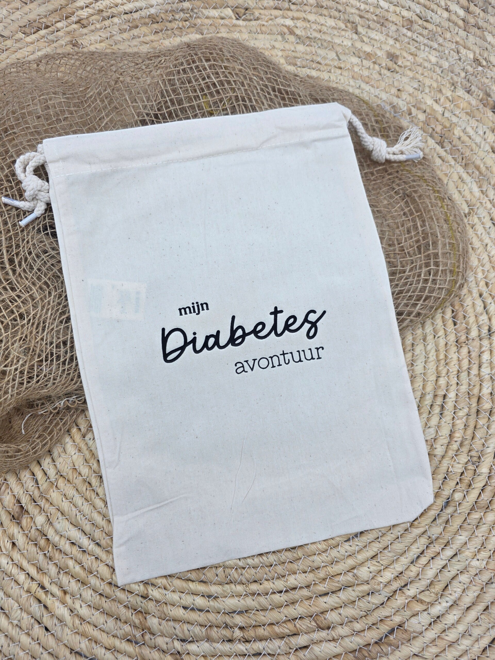 Dit speciale tasje met de tekst “Mijn diabetes avontuur” is bedoeld om dierbare herinneringen te bewaren. Denk aan ziekenhuisbandjes, foto’s, kaartjes, briefjes of andere kleine momenten die bij jouw diabetesreis horen.